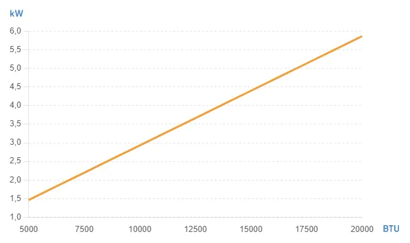 Eén kW is gelijk aan 3412.14 BTU