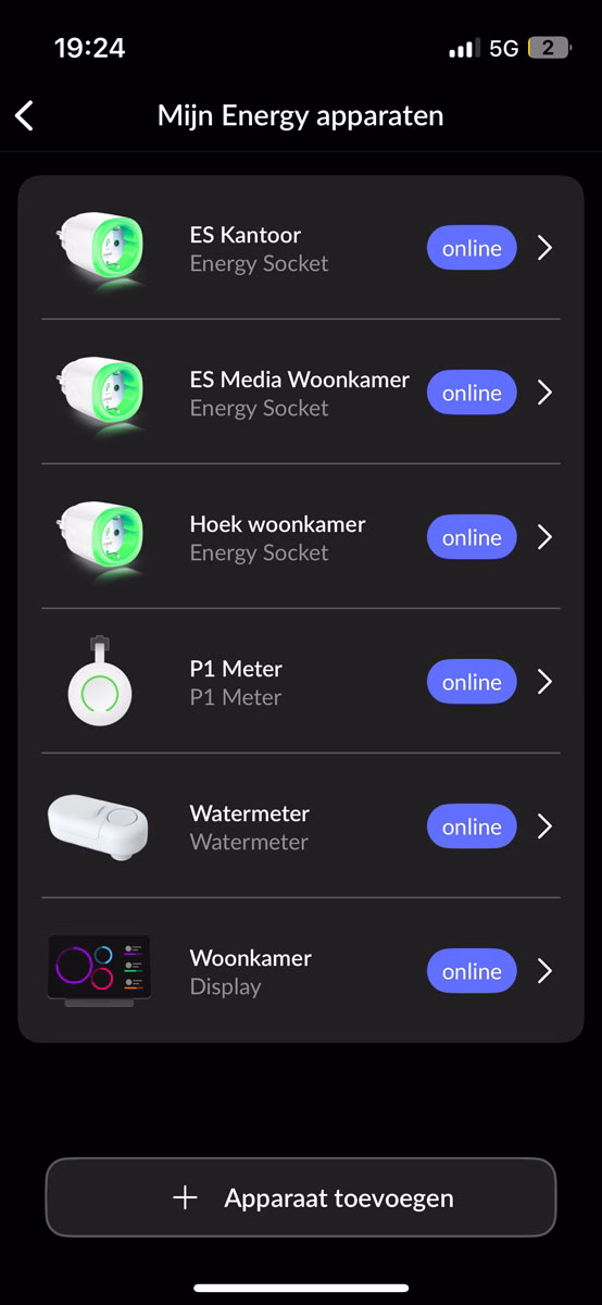 De HomeWizard Energy App biedt real-time gegevens over het energieverbruik van elk verbonden apparaat. Dit betekent dat je direct kunt zien hoeveel stroom elk apparaat verbruikt zodra het wordt ingeschakeld. Dit live inzicht helpt je om je energieverbruik te monitoren en kosten te besparen door bewuster om te gaan met energie.