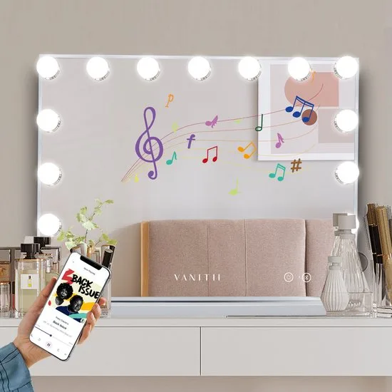 - De spiegel beschikt over 15 ingebouwde LED-lampen die zorgen voor heldere verlichting. Dit is handig voor nauwkeurige taken zoals make-up aanbrengen.