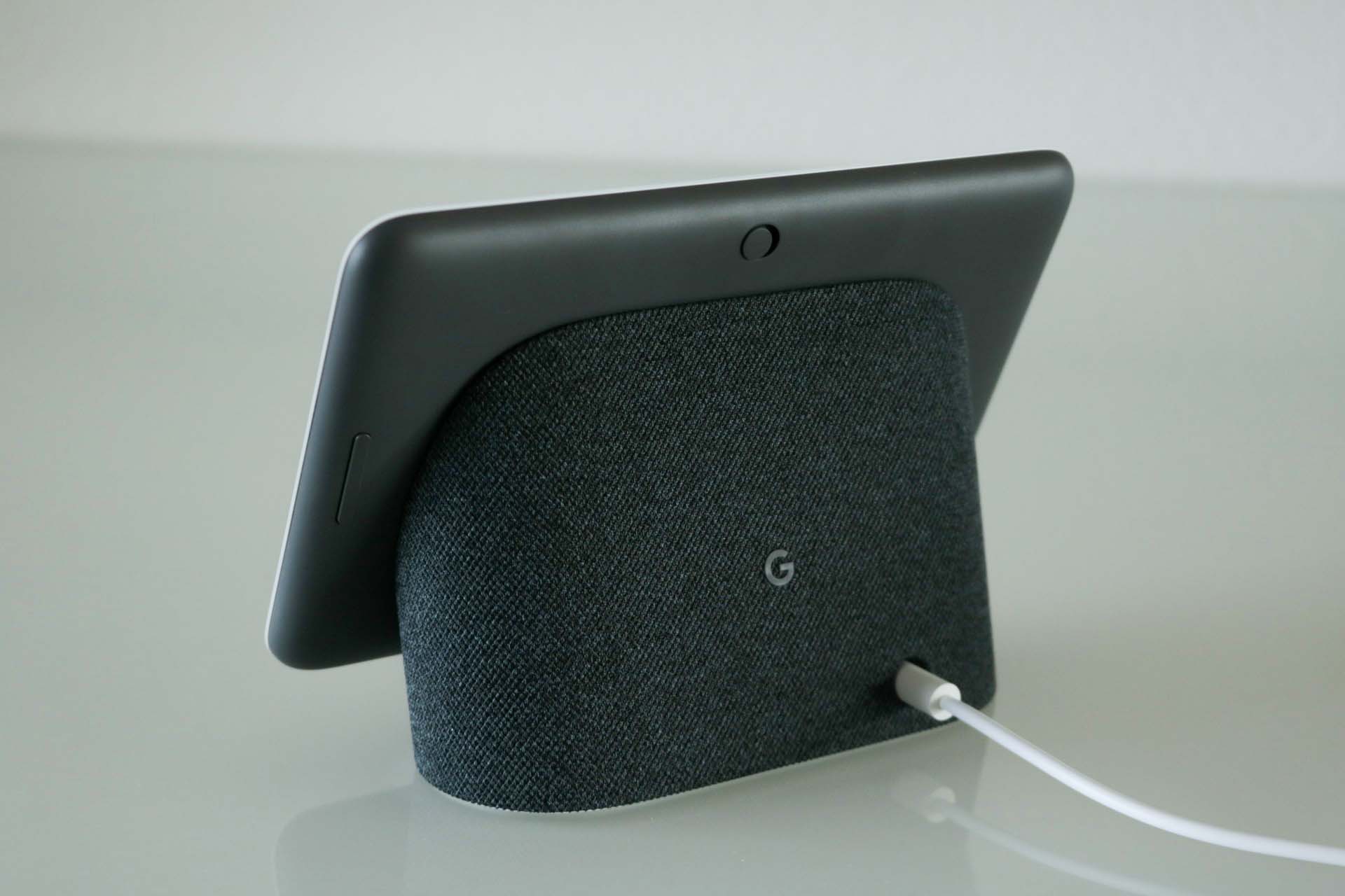 Het apparaat heeft discrete fysieke knoppen aan de achterkant, waaronder een volumeknop en een schakelaar om de microfoon uit te zetten voor privacy. Aan de achterzijde onderkant bevindt zich een enkele voedingspoort. De minimalistische benadering van knoppen en poorten draagt bij aan het gestroomlijnde ontwerp van de Nest Hub Gen 2.