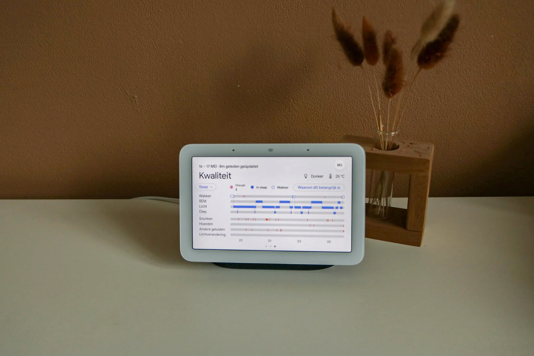 - Nachtelijke Metingen: Tijdens de nacht registreert de Nest Hub Gen 2 wanneer je in slaap valt, hoe vaak je beweegt, hoeveel tijd je in verschillende slaapfasen doorbrengt, en wanneer je wakker wordt. Het kan zelfs geluiden zoals snurken en hoesten detecteren, wat nuttige informatie kan zijn voor je slaapgezondheid.