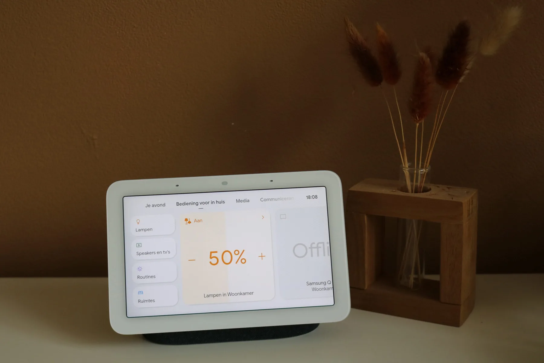Gebruik het touchscreen van de Nest Hub Gen 2 voor directe controle. Veeg naar beneden om het bedieningspaneel te openen en de lichten aan te passen. Je kunt ook verlichtingsscènes instellen zoals “Filmavond” of “Ochtendroutine.”