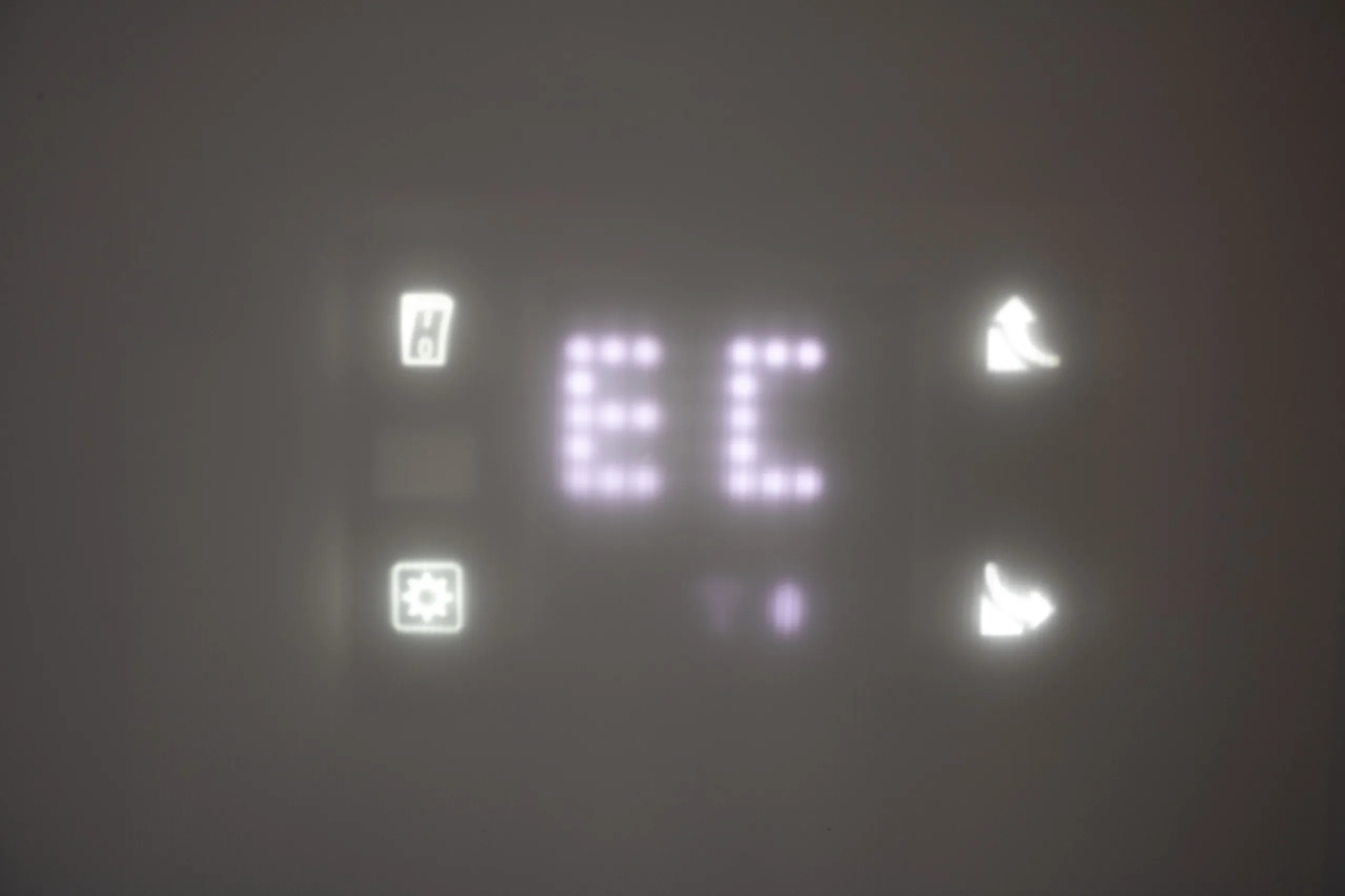 Na het inschakelen zie je de standaard ingestelde temperatuur op het paneel. Iets opvallends was dat de display op het paneel meedraait in de richting van het paneel. Dus als je het paneel nou op de lange of korte zijde zet, de display is elke keer horizontaal zichtbaar.
