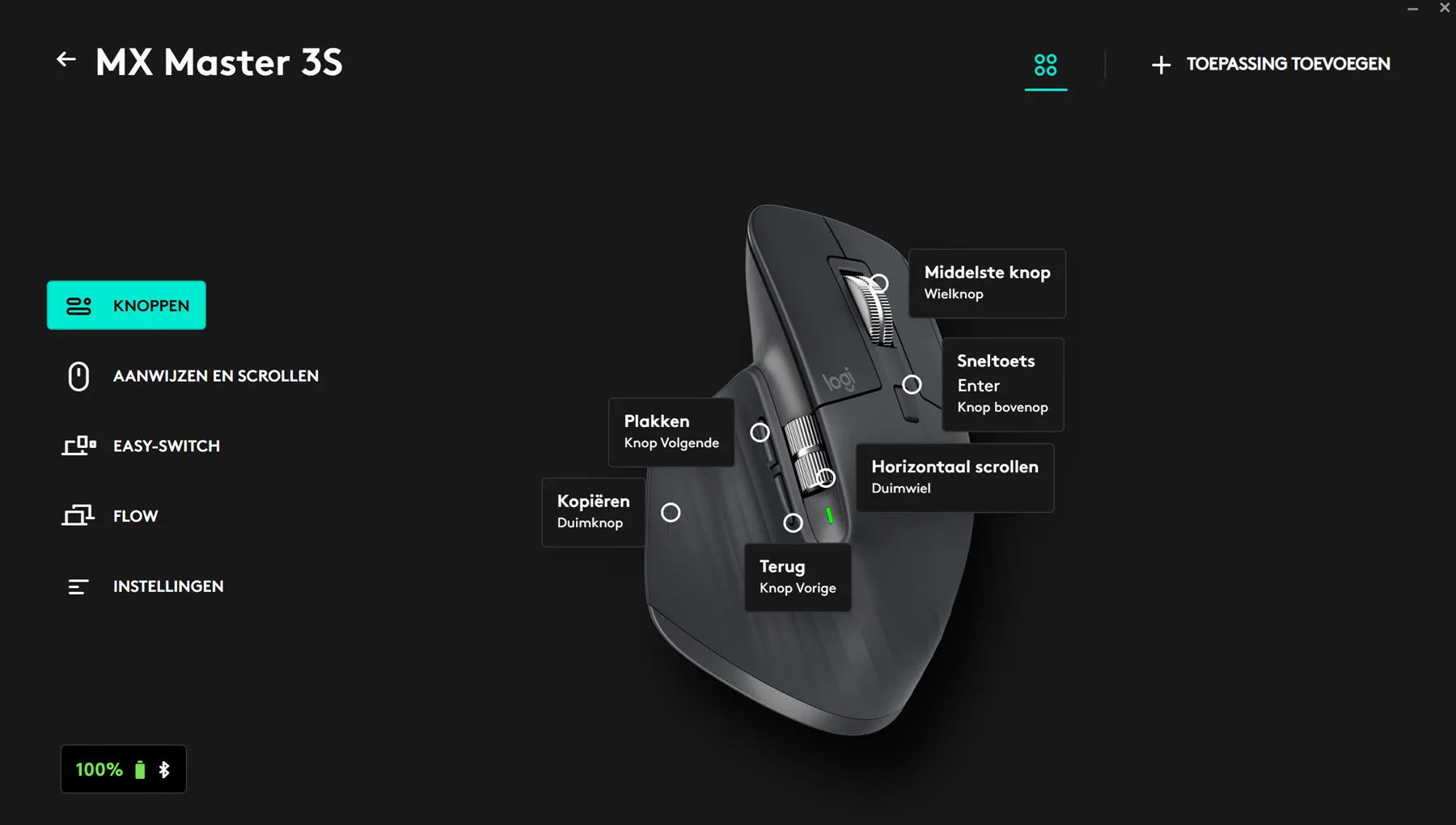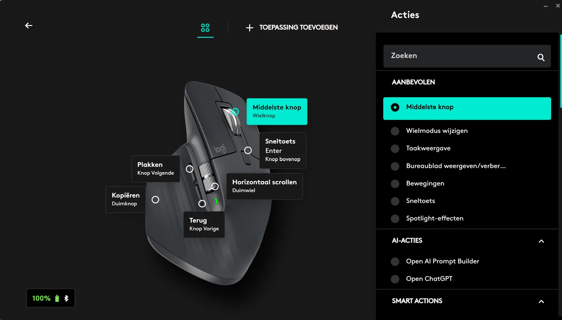 Logi Options+ software voor het instellen van de knoppen