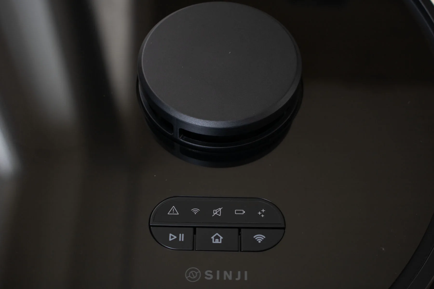 Op de robotstofzuiger zelf zit ook nog een bedieningspaneel, zodat je de Sinji robotstofzuiger Pro zonder telefoon opdrachten kan geven. Er zijn drie knoppen op het bedieningspaneel: Play/Pause knop, Home-knop en Verbindingsknop. Via deze knoppen kan je de volgende opdrachten doorgeven: