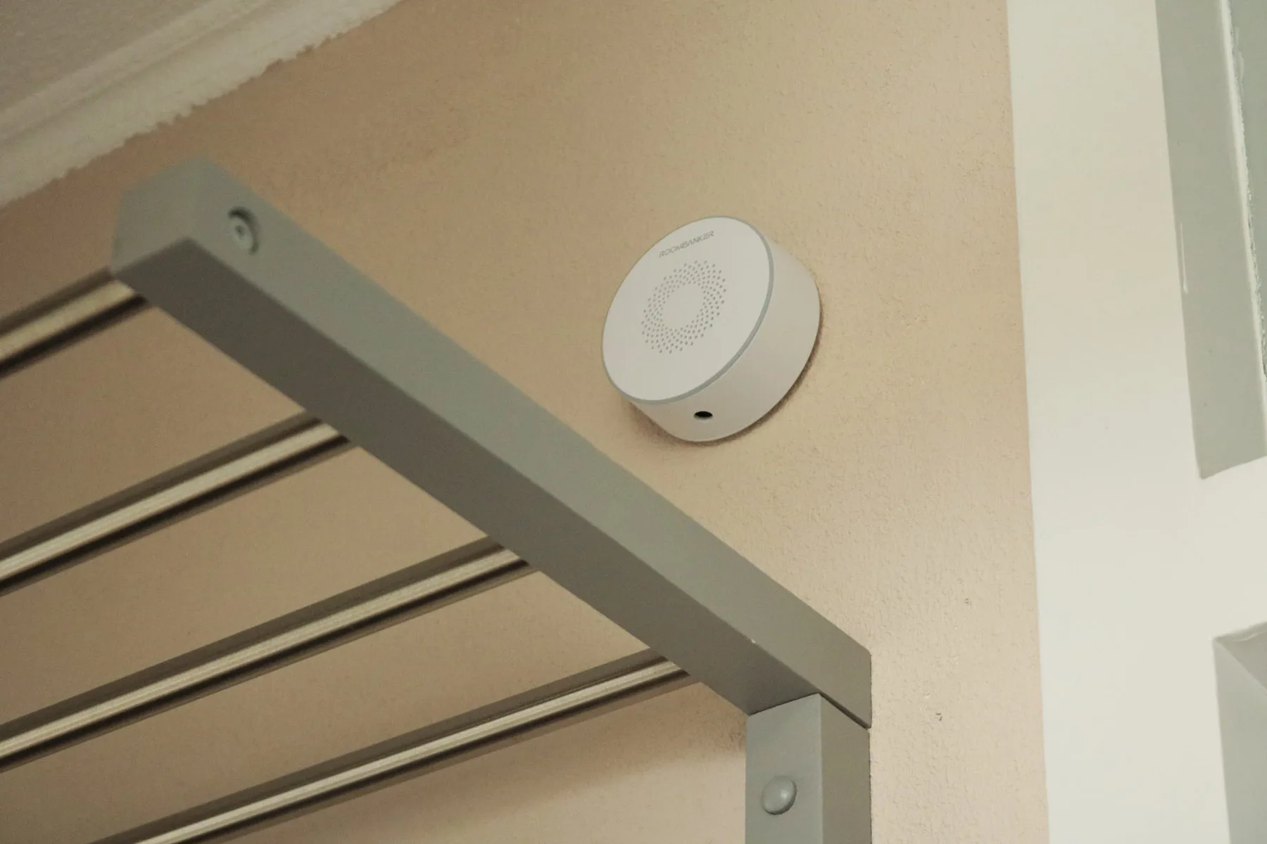 Dit was het eerste apparaat dat we gingen koppelen aan ons draadloos alarmsysteem. En daar hadden we beter mee kunnen wachten, want wát een lawaai komt er uit die ingebouwde sirene wanneer het alarm afgaat. Gelukkig is het mogelijk in de app om de sirene tijdelijk uit te schakelen, zodat we verder konden met het installeren en testen van de andere sensoren.